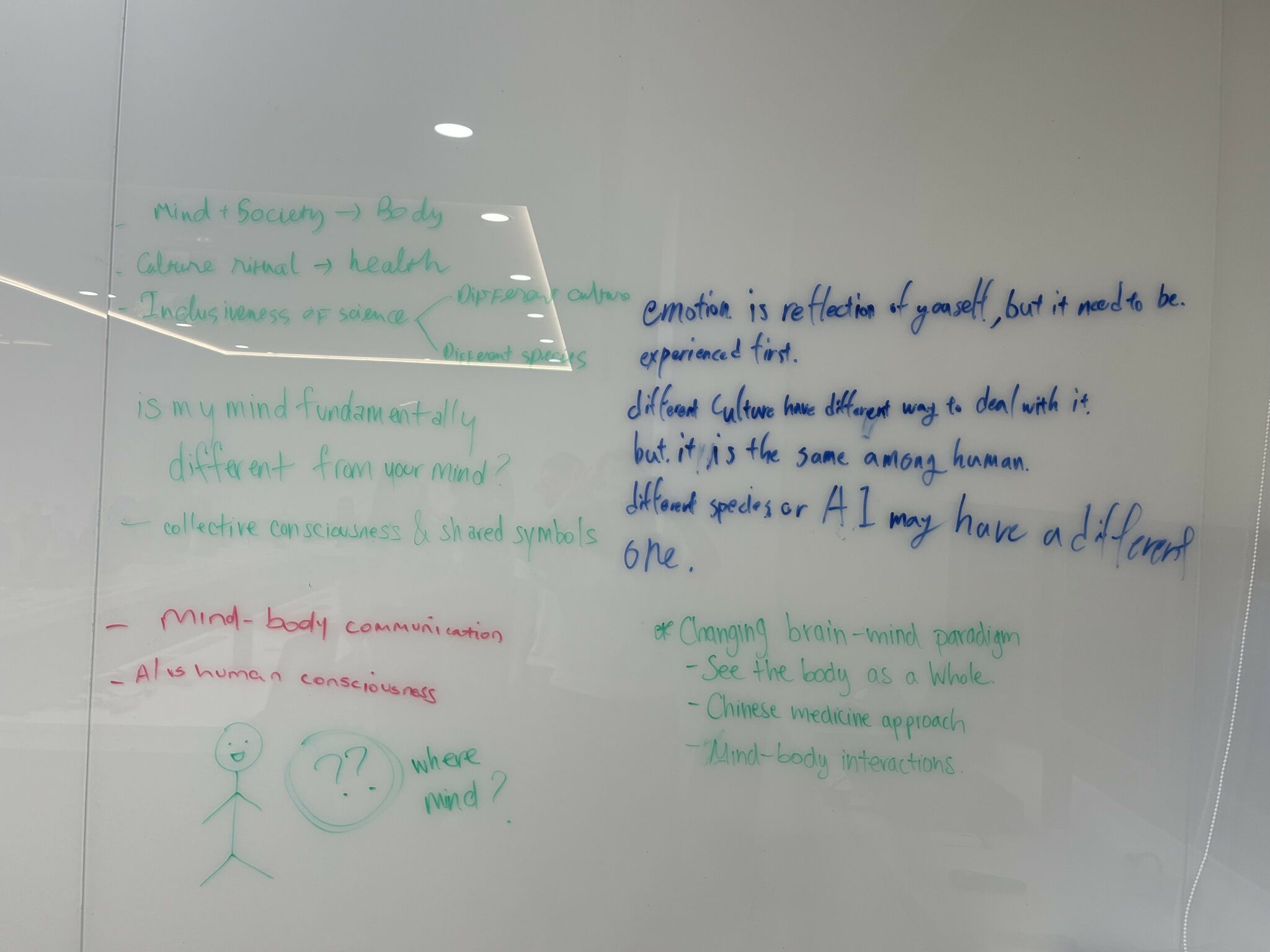 GIMBC and GIMH (Graduate Institute of Medical Humanities) students collaborate every week in their Mind, Body, Society class offered in the fall semester. This month (2024-10), Professors Tzuyu Hsu and Dana Powell wrapped up their “Mind Module” with an engaging synthesis exercise.